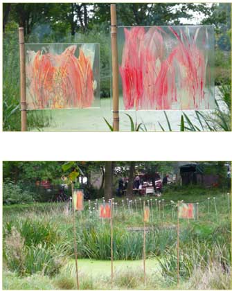 Die Stormarner Künstlerin Ute Elisabeth Herwig beteiligte sich mit einer Glas-Installation am Kunstpfad. Sie hat sich für Ihren gläsernen Beitrag zum Thema "Herbstzeit" die Teiche ausgesucht. "Die Zeit des Herbstes symbolisiert für mich in besonderer Weise den Übergang, von Ausdehnung zum Rückzug, von Bewegung zum Ruhezustand, von Fülle zur Kargheit.“