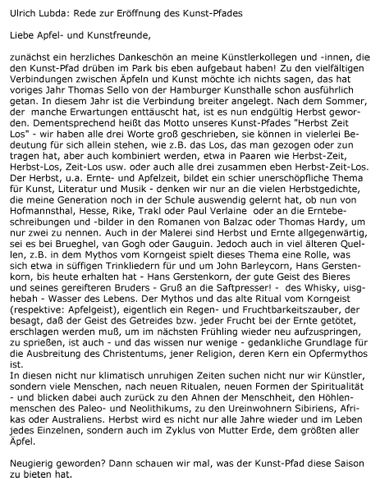 Hier sind die Objekte der KUNST-PFADE 2005 und 2006 zu sehen. KUNST-PFAD 2007 Thema: „HerbstZeitLos “![]() Ausstellende Künstlerinnen und Künstler:
